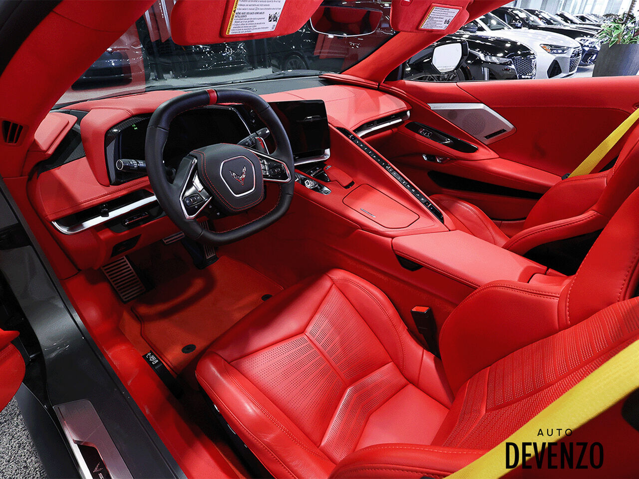 Garantie Complete 30 May 2026 !! Stingray R Appearance Package 2023 Chevrolet Corvette Stingray Coupe 3LT, Build Sheet as Follow : Hypersonic Grey Metallic on Adrenaline Red Dipped, Preferred Equipment Group 3LT, Magnetic Selective Ride Control, Carbon Fiber Interior Trim - Cluster Surround and Console Door Switch Plates, Performance Exhaust, Stingray R Appearance Package, Yellow Painted Brake Calipers, Lower Rear Spoiler and Front Splitter, Engine Cover in Edge Red, Rocker Panel Extensions Black, Yellow Seat Belts, Carbon Flash Metallic Painted Outside Mirrors, Battery Protection Package. 3TL comes with Heated and Ventilated Seats, Heated Steering, Bose Performance Series, Navigation System, Apple Carplay, Surround View Camera, Heads Up Display..... Beautiful Colour Combo !! Full clear 3M on the front end of the car. Showroom Condition, No Accidents, Balance of Warranty from GM.