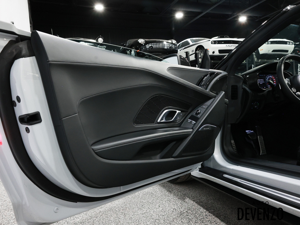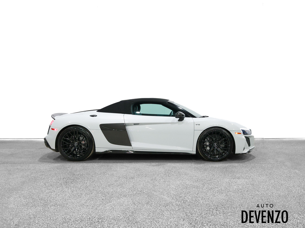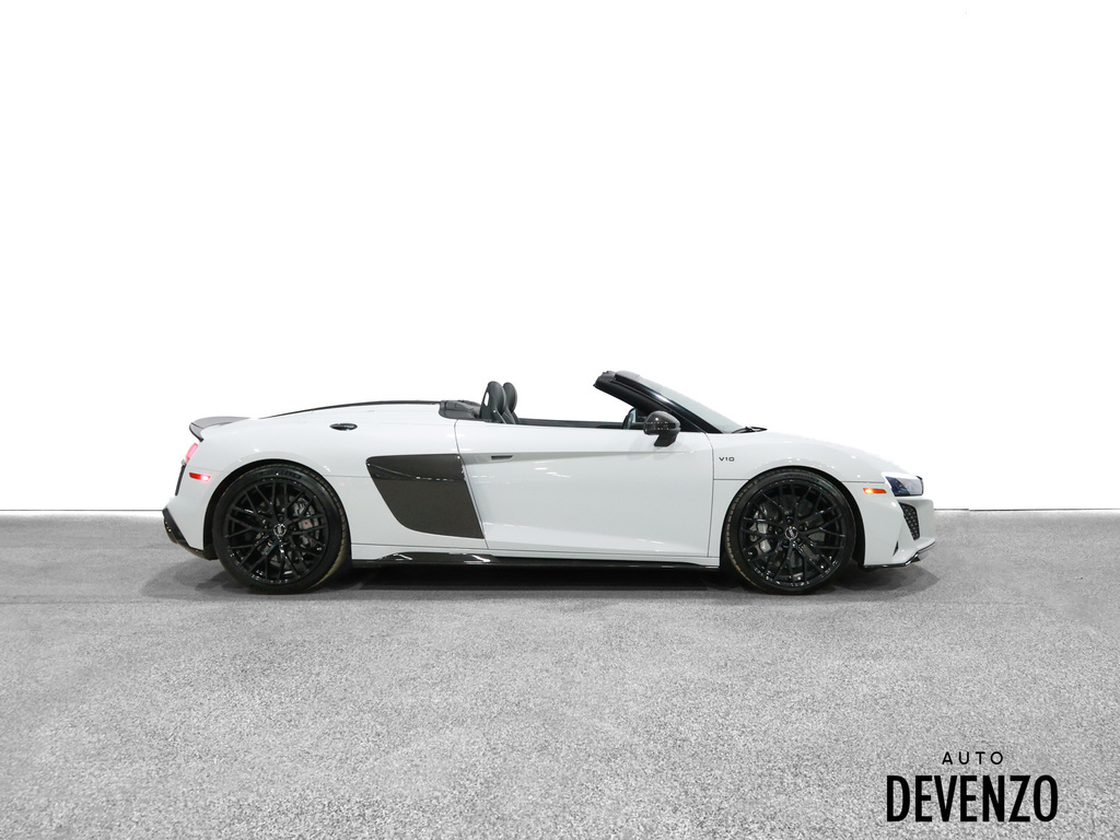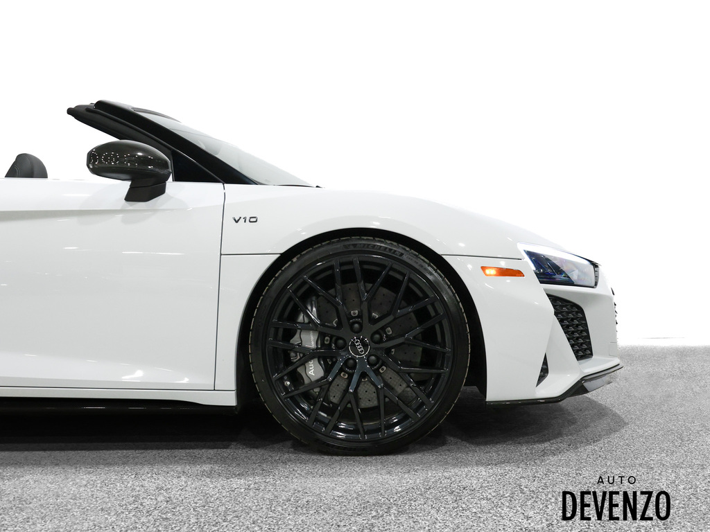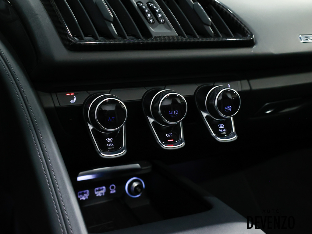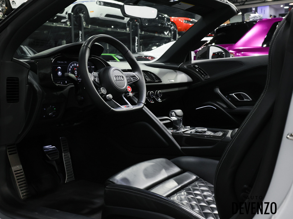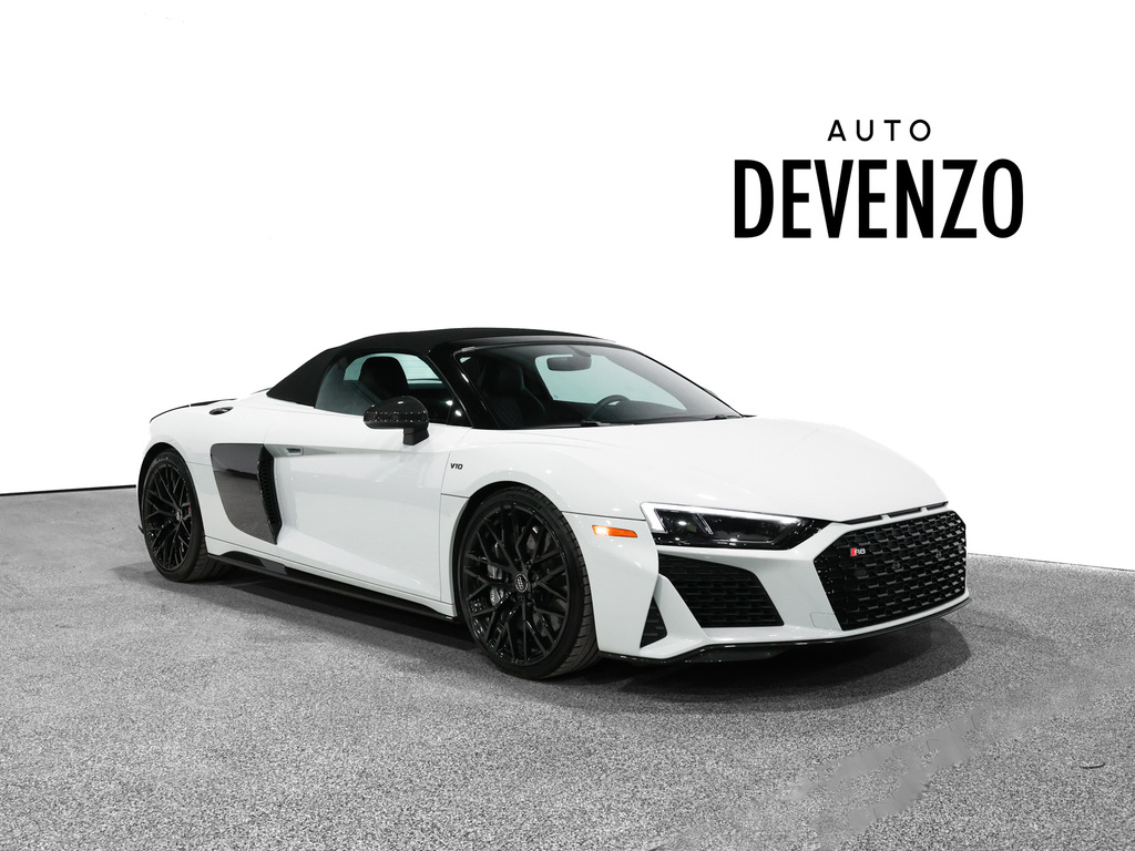 2020 Audi R8 Spyder V10 Performance Quattro, Suzuka Grey Metallic / Black with Grey Stitching Fine Nappa Leather Diamond Quilted, Audi Sport Package for V10 Performance, 20'' Black Finished Wheels, Carbon Fiber Exterior (Front Lip, Mirror covers, Side Skirts, Rear Bonnet, Engine Bay Cover, Rear Spoiler, Rear Diffuser), Carbon Fiber Interior Trim, Bang & Olufsen 13 Speakers, Audi Ceramic Brakes with Grey Calipers, Sport Exhaust, Audi Phonebox with Wireless Charging, Heated Seats.... Full Front PPF, Carfax Certified, No Accidents !! Auto Devenzo, Leader des concessionaires usagés de véhicules de luxe au Canada Venez vivre une experience et un service VIP hors du commun. Visitez notre page Instagram et Facebook Transport partout au pays. Nous offrons le meilleur programme de garantie prolongée pour véhicule haut de gamme. Nous reprenons votre échange a un prix tres competitif Devenez propriétaire de la voiture de vos reves !! Financement & Leasing Credit-Bail Disponible Come Visit Our New Showroom Of Exclusive Vehicles Of All Makes And See Why We Are The New Jewel Of Used Car Dealers In Canada !! Transport offered all over the country at competitive rates Premium Extended Warranty Available For High End Vehicles Valid Across The Country Bank Financing and Leasing We Accept All Trade-Ins !!