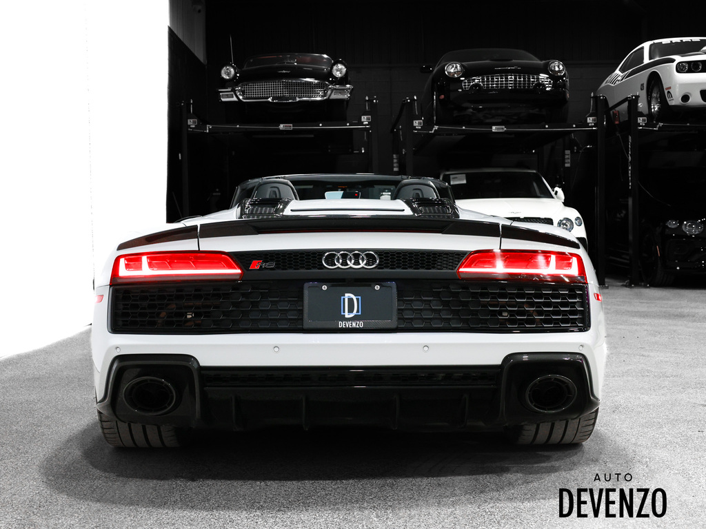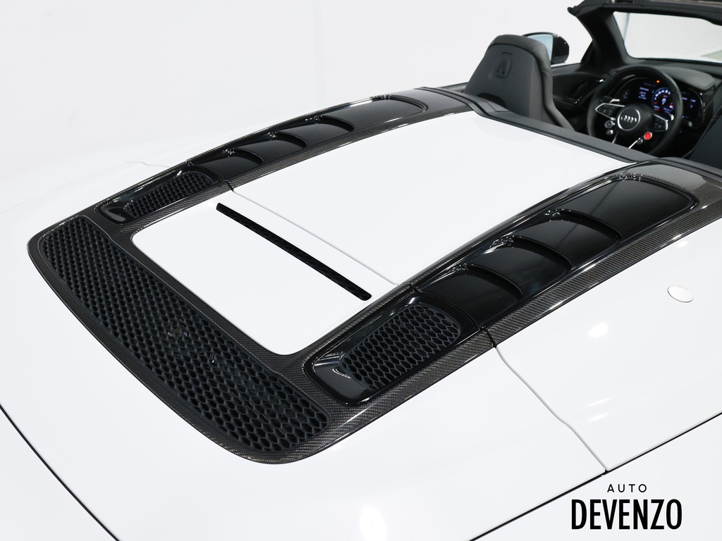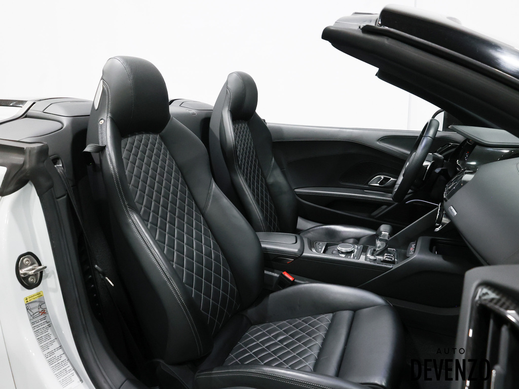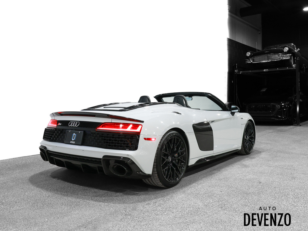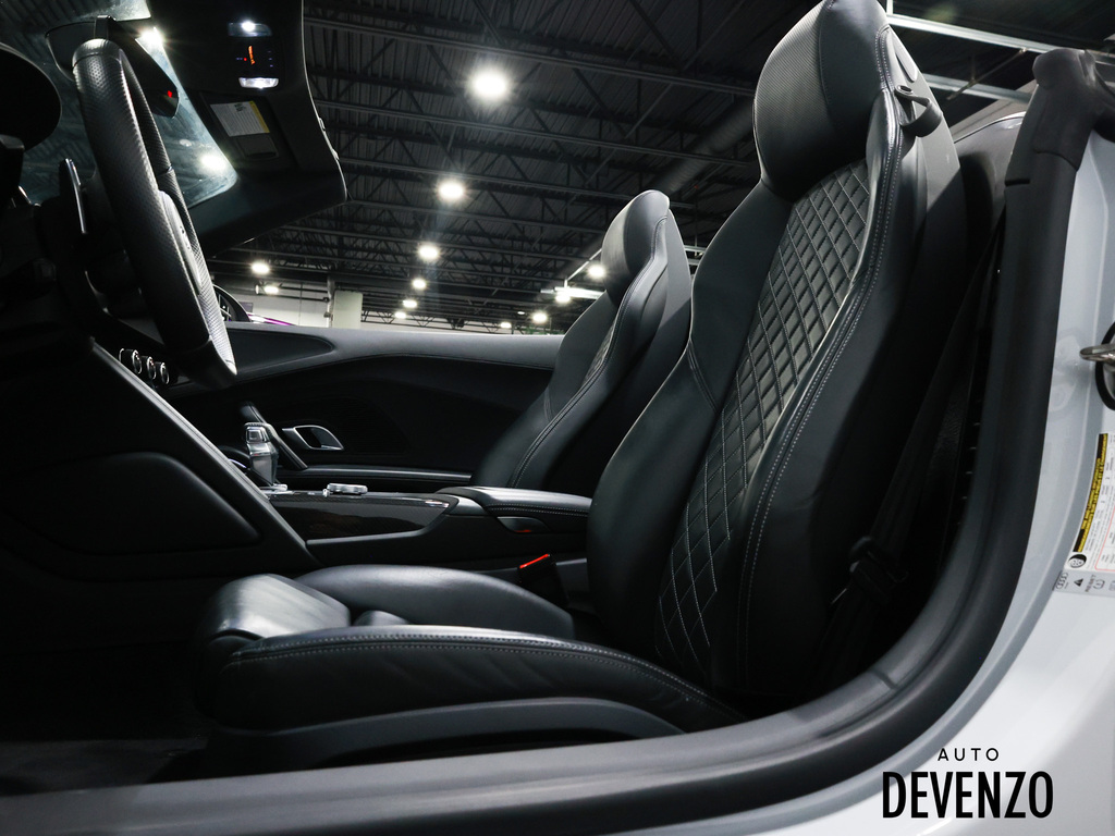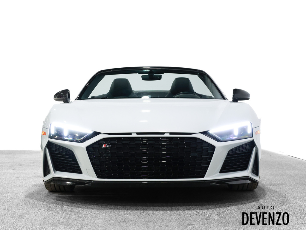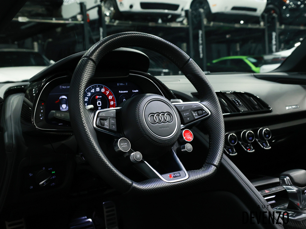 2020 Audi R8 Spyder V10 Performance Quattro, Suzuka Grey Metallic / Black with Grey Stitching Fine Nappa Leather Diamond Quilted, Audi Sport Package for V10 Performance, 20'' Black Finished Wheels, Carbon Fiber Exterior (Front Lip, Mirror covers, Side Skirts, Rear Bonnet, Engine Bay Cover, Rear Spoiler, Rear Diffuser), Carbon Fiber Interior Trim, Bang & Olufsen 13 Speakers, Audi Ceramic Brakes with Grey Calipers, Sport Exhaust, Audi Phonebox with Wireless Charging, Heated Seats.... Full Front PPF, Carfax Certified, No Accidents !! Auto Devenzo, Leader des concessionaires usagés de véhicules de luxe au Canada Venez vivre une experience et un service VIP hors du commun. Visitez notre page Instagram et Facebook Transport partout au pays. Nous offrons le meilleur programme de garantie prolongée pour véhicule haut de gamme. Nous reprenons votre échange a un prix tres competitif Devenez propriétaire de la voiture de vos reves !! Financement & Leasing Credit-Bail Disponible Come Visit Our New Showroom Of Exclusive Vehicles Of All Makes And See Why We Are The New Jewel Of Used Car Dealers In Canada !! Transport offered all over the country at competitive rates Premium Extended Warranty Available For High End Vehicles Valid Across The Country Bank Financing and Leasing We Accept All Trade-Ins !!