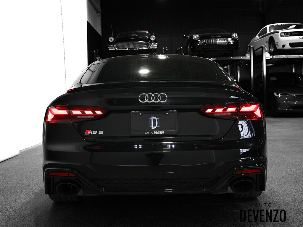 2023 Audi RS5 Sportback 2.9L V6 Twin Turbo 444hp, Finished in Black Metallic on Black with Red Stitching Fine Nappa Leather, Black Optics Package, RS Interior Design Package, Carbon Fiber Interior Trim, Alcantara Steering Wheel, 20Inch 5-Arm Flag Design Wheels, Red Brake Calipers, Bang & Olufsen Sound System, Heated Steering Wheel, Driver Assistance with Adaptive Cruise Control, Wireless Charging and more. Balance of Warranty Audi May-2-2027 Auto Devenzo,Venez Vivre Une Experience Et Un Service Vip Hors Du Commun. Transport Partout Au Canada , Facetime / Video Sur Demande. Nous Offrons Le Meilleur Programme De Garantie Prolongée Pour Véhicule Haut De Gamme. Nous Reprenons Tous Vos Échanges Auto Devenzo, Devenez Propriétaire de la Voiture de Vos Reves !! Financement & Leasing Credit-Bail Disponible Come Visit Our New Showroom Of Exclusive Vehicles Of All Makes And See Why We Are The Jewel Of Used Car Dealers In Quebec Transport All Over Canada Premium Extended Warranty Available For High End Vehicles Valid Across The Country Financing And Leasing Available And Trade-ins Are Welcome.