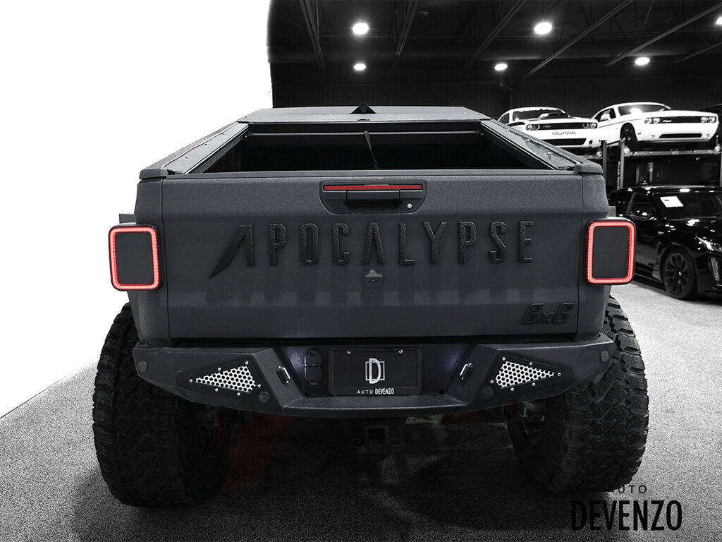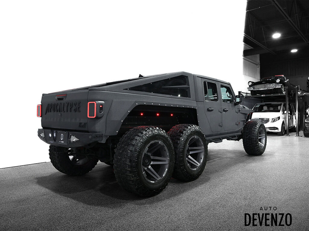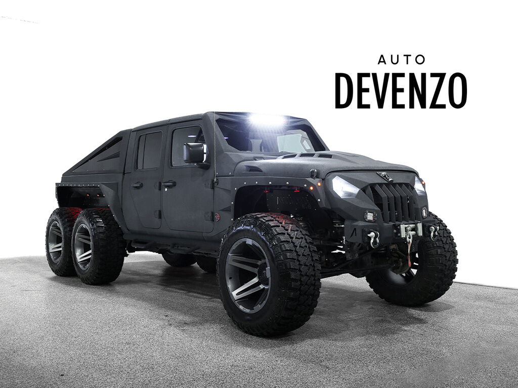 A GEM from Auto Devenzo ! 2023 Jeep Gladiator 6x6 APOCALYPSE beast OVER 190 000$ USD IN MODIFICATIONS !! - HELLCAT 750 HP Motor Conversion - Tandem Axle with Custom Differential and Driveline - Complete Predator Body Package with Hood, Fender, and Bumper Upgrades - Custom Roll & Lock Bed Setup with Armor Coated Panels - LED Light Bar, Rock Lights, Halo Headlights, and Smoked Tail Lights - Rigid Interior Upgrade in Leather with Diamond Stitching - Upgraded Sound System and Infotainment System - Custom Suspension, Geometry Correction, and FOX Shocks - 5.13 Gear Install with Full Brake System Modifications - Massive Off-Road Tires Mounted on Anthracite SFJ Wheels - Painted in Satin Gunmetal with Black Accents and so much more !! Built to turn heads and conquer terrain ! ** CARFAX CERTIFIED NO ACCIDENT** **Price in USD** Auto Devenzo,Venez Vivre Une Experience Et Un Service Vip Hors Du Commun. Transport Partout Au Canada , Facetime / Video Sur Demande. Nous Offrons Le Meilleur Programme De Garantie Prolongée Pour Véhicule Haut De Gamme. Nous Reprenons Tous Vos Échanges Auto Devenzo, Devenez Propriétaire de la Voiture de Vos Reves !! Financement & Leasing Credit-Bail Disponible Come Visit Our New Showroom Of Exclusive Vehicles Of All Makes And See Why We Are The Jewel Of Used Car Dealers In Quebec Transport All Over Canada Premium Extended Warranty Available For High End Vehicles Valid Across The Country Financing And Leasing Available And Trade-ins Are Welcome