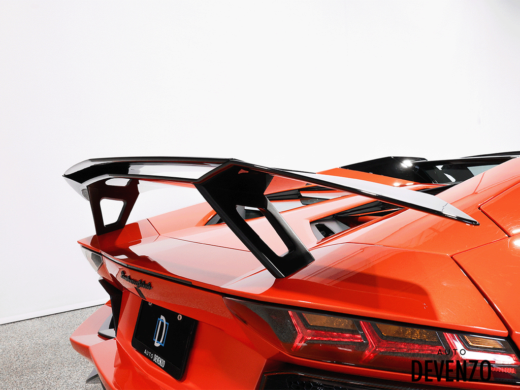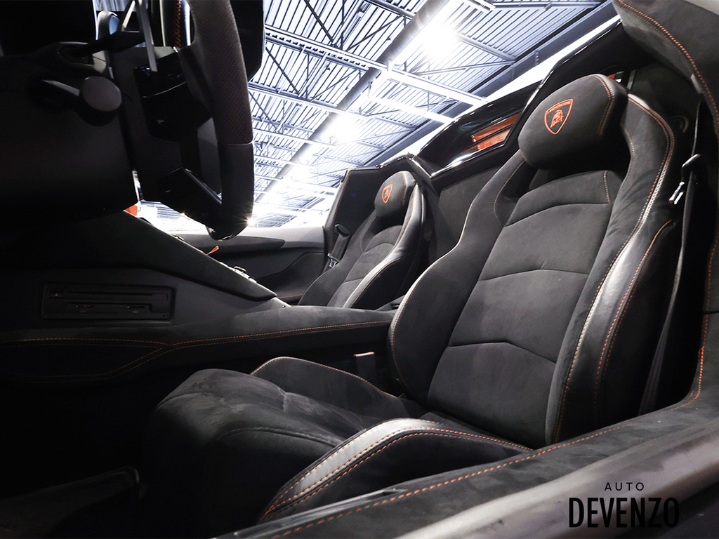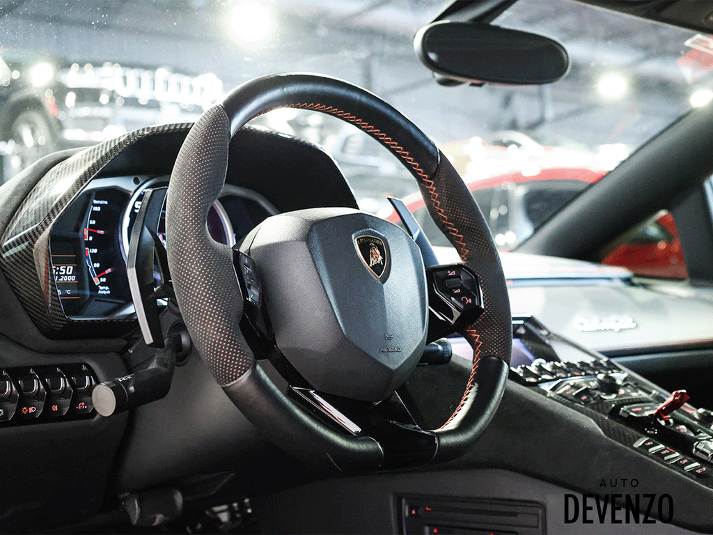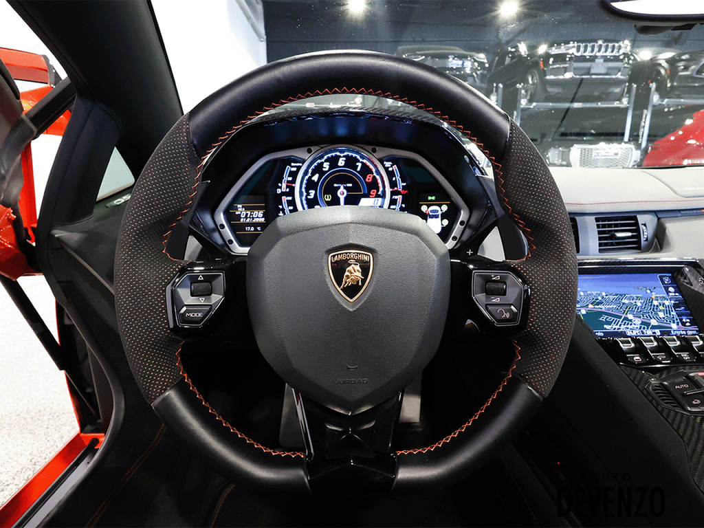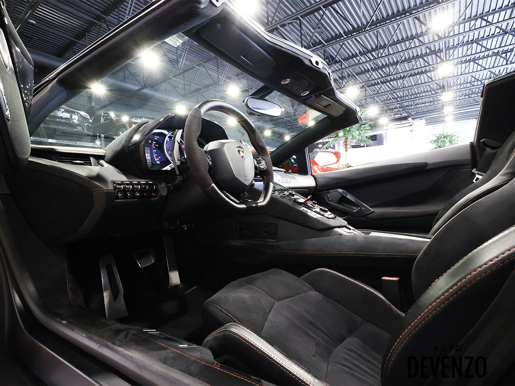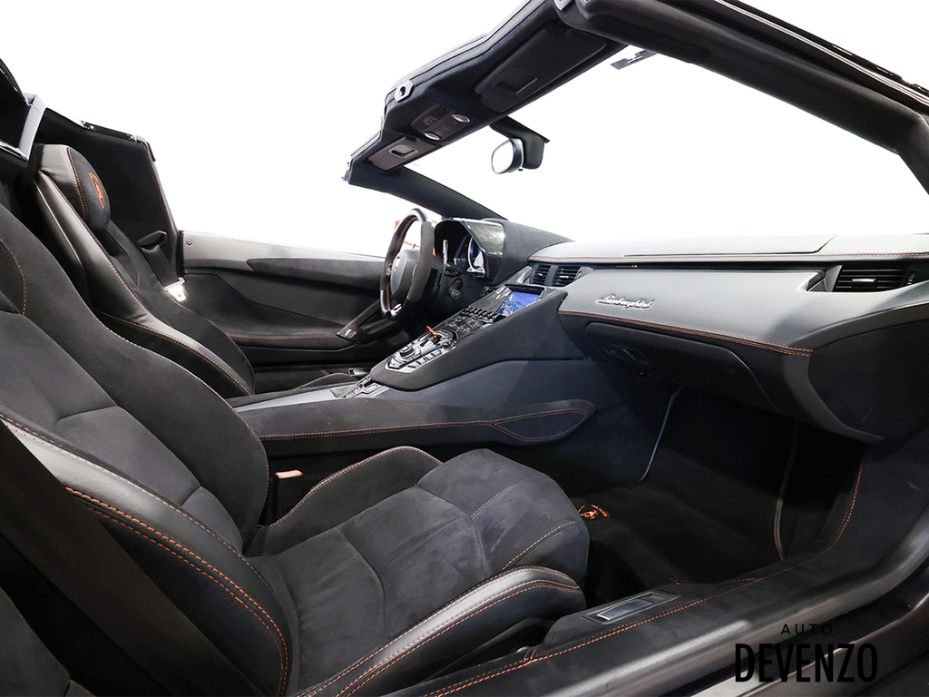 Immaculate 2014 Lamborghini Aventador Roadster LP700-4 700hp V12 6.5L, Orange on Black Alcantara Seats with Embroided Logo on Headrests, Carbon Fiber Exterior Body Kit which included Front Lower Bumper, Side Skirts, Rear Diffuser to add to the already exhaustive list of Carbon Factory Options such as Mirrors, Side Vents, Hood Flaps, Carbon Fiber Complete Interior - Dash, Center Console, Door Trims. Custom Rear Wing. Custom Exhaust. Full Front End PPF Clear. No Accidents, Immaculate Condition.***Please Note HRE Wheels are Not Included in the sale Price***Included Factory Lamborghini Wheels*** Auto Devenzo, Le Nouveau Bijou Des Concessionaires Usagés de Luxe au Canada Venez Vivre Une Experience Et Un Service Vip Hors Du Commun. Transport Partout Au Canada , Facetime / Video Sur Demande. Nous Offrons Le Meilleur Programme De Garantie Prolongée Pour Véhicule Haut De Gamme. Nous Reprenons Tous Vos Échanges Auto Devenzo, Devenez Propriétaire de la Voiture de Vos Reves !! Financement & Leasing Credit-Bail Disponible Come Visit Our New Showroom Of Exclusive Vehicles Of All Makes And See Why We Are The New Jewel Of Used Car Dealers In Quebec Transport All Over Canada Premium Extended Warranty Available For High End Vehicles Valid Across The Country Financing And Leasing Available And Trade-ins Are Welcome.
