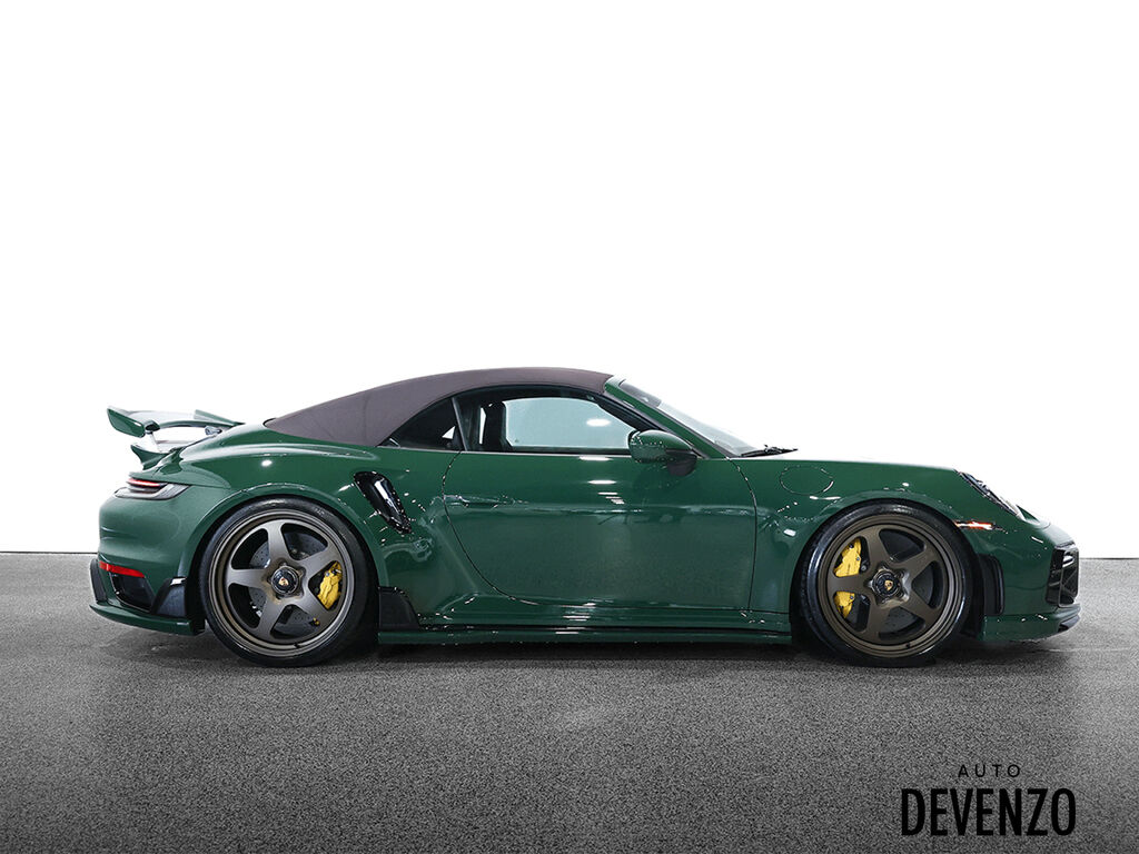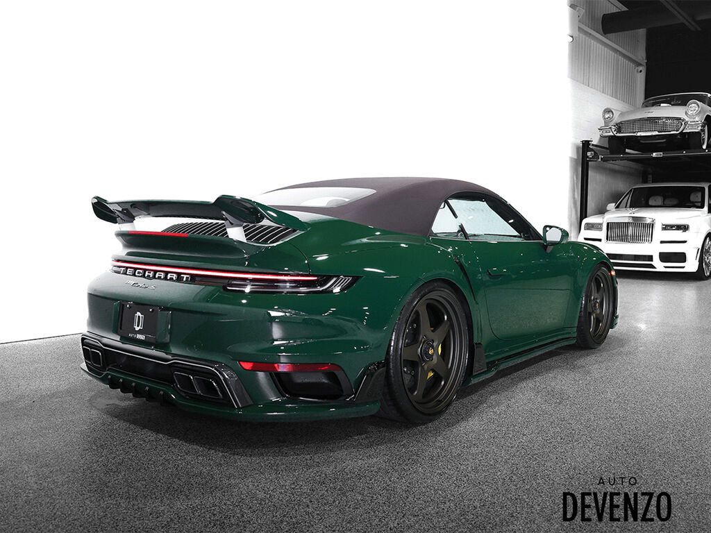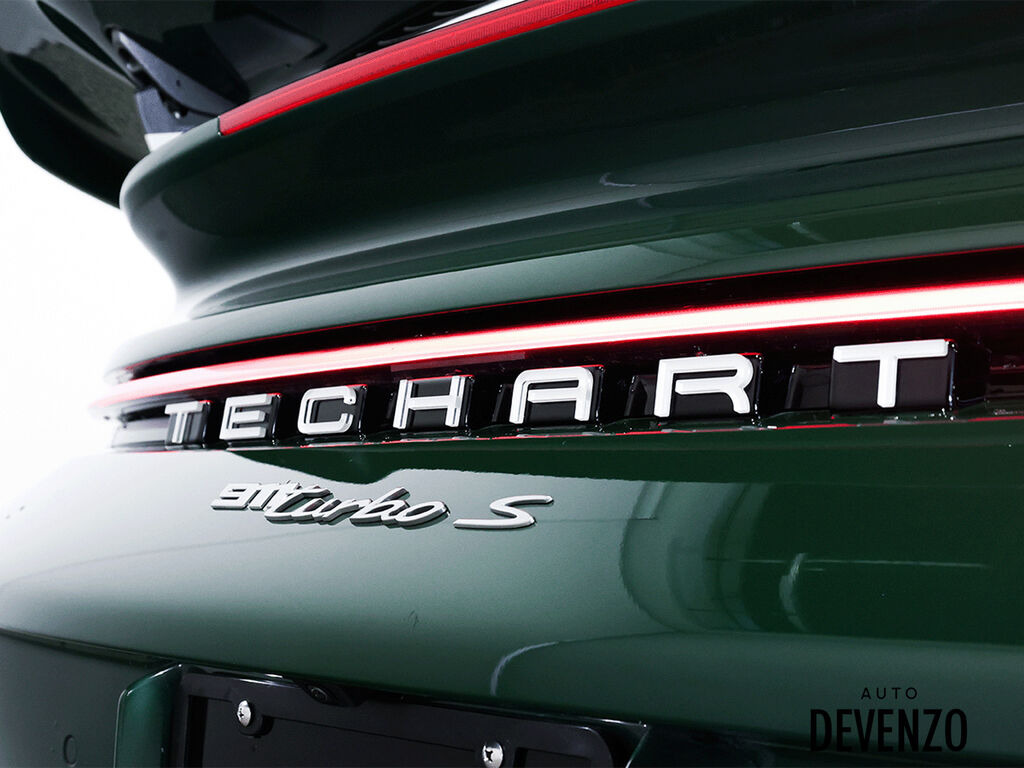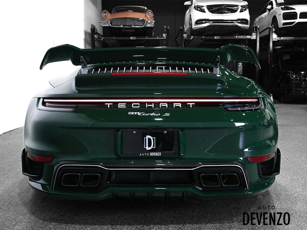 2022 Porsche 911 Turbo S Full Techart, Paint to Sample: British Racing Green (14,640$ option), Bronze HRE 527 2-Piece Forged Wheels Front 21''/ Rear 22'' are Available at Additional Cost*** Preparation for Paint to Sample: British Racing Green Club Leather in Trufe Brown with Chalk Stitching Under Door Puddle Light Projectors Stone Guard on Rear Fenders in Black Power Steering Plus Front Axle Lif System Ventilated Seats Storage Package Seat Belts in Trufe Brown $620 Sport Chrono Stopwatch Dial in White Central Tachometer in White Personalized Air Vent Surrounds and Slats in Leather Upper Interior Mirror Panel in Leather - Chalk Fuse Box Covers in Leather - Chalk Steering Column Casing in Leather i.c.w. Memory Package Sun Visors in Leather Inner Door-Sill Guards in Leather - Chalk Sport Seats Plus Backrest Shells in Leather with Matte Carbon Fiber Inlay Extended Dashboard and Door Panel Package in Leather Heated GT Sport Steering Wheel with Trim in Matte Carbon Fiber Door-Sill Guards in Matte Carbon Fiber, Illuminated Pedals and Footrest in Aluminum Burmester® High-End Surround Sound System LED-Matrix Design Headlights in Black incl. Porsche Dynamic Light System Plus (PDLS+) Exclusive Design Taillights Surround View Auto Devenzo, Le Nouveau Bijou Des Concessionaires Usagés de Luxe au Canada Venez Vivre Une Experience Et Un Service Vip Hors Du Commun. Transport Partout Au Canada , Facetime / Video Sur Demande. Nous Offrons Le Meilleur Programme De Garantie Prolongée Pour Véhicule Haut De Gamme. Nous Reprenons Tous Vos Échanges Auto Devenzo, Devenez Propriétaire de la Voiture de Vos Reves !! Financement & Leasing Credit-Bail Disponible Come Visit Our New Showroom Of Exclusive Vehicles Of All Makes And See Why We Are The New Jewel Of Used Car Dealers In Quebec Transport All Over Canada Premium Extended Warranty Available For High End Vehicles Valid Across The Country Financing And Leasing Available And Trade-ins Are Welcome.