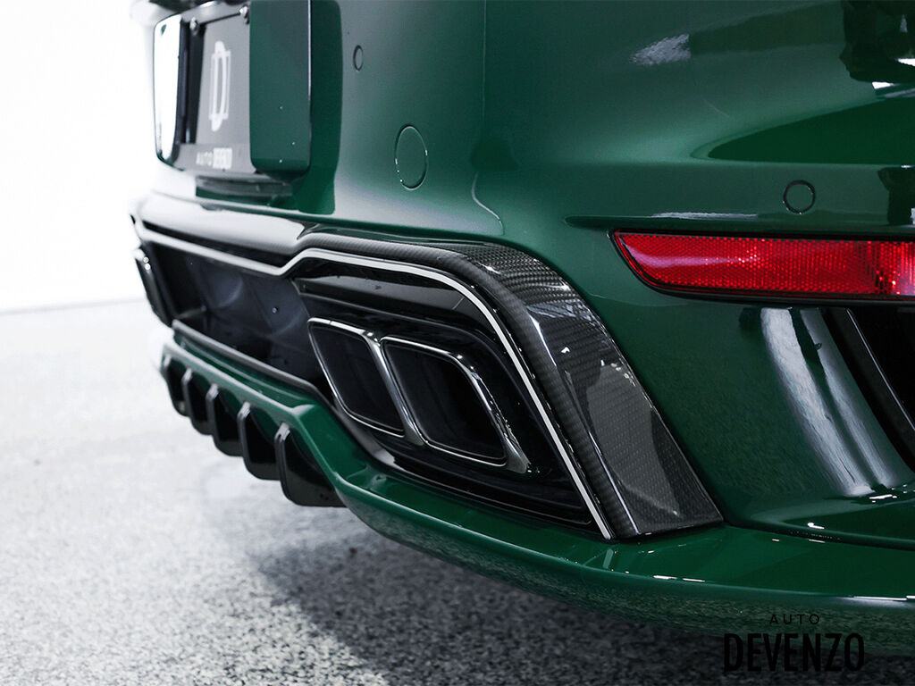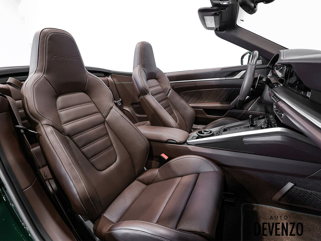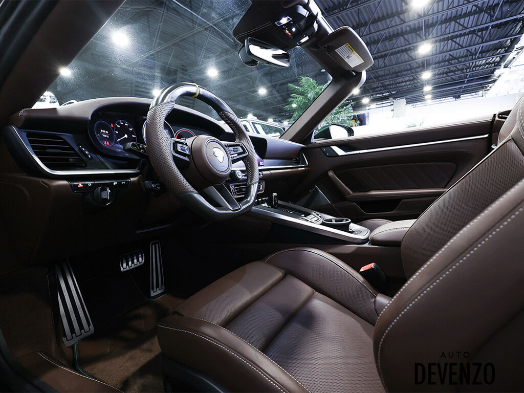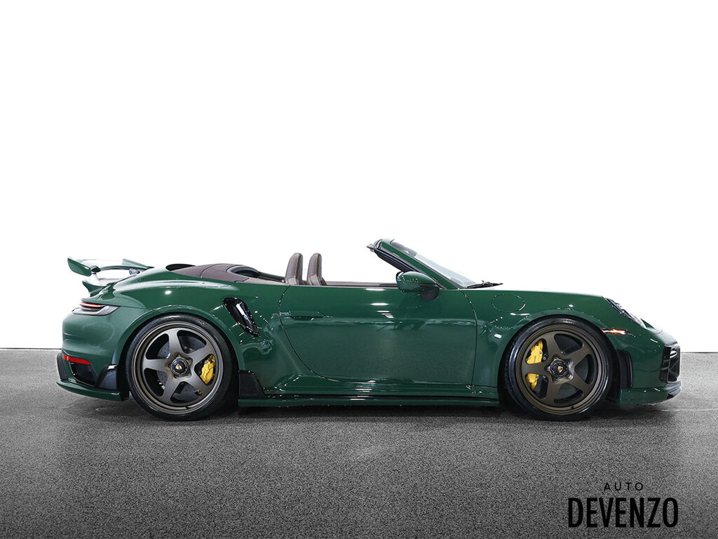 2022 Porsche 911 Turbo S Full Techart, Paint to Sample: British Racing Green (14,640$ option), Bronze HRE 527 2-Piece Forged Wheels Front 21''/ Rear 22'' are Available at Additional Cost*** Preparation for Paint to Sample: British Racing Green Club Leather in Trufe Brown with Chalk Stitching Under Door Puddle Light Projectors Stone Guard on Rear Fenders in Black Power Steering Plus Front Axle Lif System Ventilated Seats Storage Package Seat Belts in Trufe Brown $620 Sport Chrono Stopwatch Dial in White Central Tachometer in White Personalized Air Vent Surrounds and Slats in Leather Upper Interior Mirror Panel in Leather - Chalk Fuse Box Covers in Leather - Chalk Steering Column Casing in Leather i.c.w. Memory Package Sun Visors in Leather Inner Door-Sill Guards in Leather - Chalk Sport Seats Plus Backrest Shells in Leather with Matte Carbon Fiber Inlay Extended Dashboard and Door Panel Package in Leather Heated GT Sport Steering Wheel with Trim in Matte Carbon Fiber Door-Sill Guards in Matte Carbon Fiber, Illuminated Pedals and Footrest in Aluminum Burmester® High-End Surround Sound System LED-Matrix Design Headlights in Black incl. Porsche Dynamic Light System Plus (PDLS+) Exclusive Design Taillights Surround View Auto Devenzo, Le Nouveau Bijou Des Concessionaires Usagés de Luxe au Canada Venez Vivre Une Experience Et Un Service Vip Hors Du Commun. Transport Partout Au Canada , Facetime / Video Sur Demande. Nous Offrons Le Meilleur Programme De Garantie Prolongée Pour Véhicule Haut De Gamme. Nous Reprenons Tous Vos Échanges Auto Devenzo, Devenez Propriétaire de la Voiture de Vos Reves !! Financement & Leasing Credit-Bail Disponible Come Visit Our New Showroom Of Exclusive Vehicles Of All Makes And See Why We Are The New Jewel Of Used Car Dealers In Quebec Transport All Over Canada Premium Extended Warranty Available For High End Vehicles Valid Across The Country Financing And Leasing Available And Trade-ins Are Welcome.