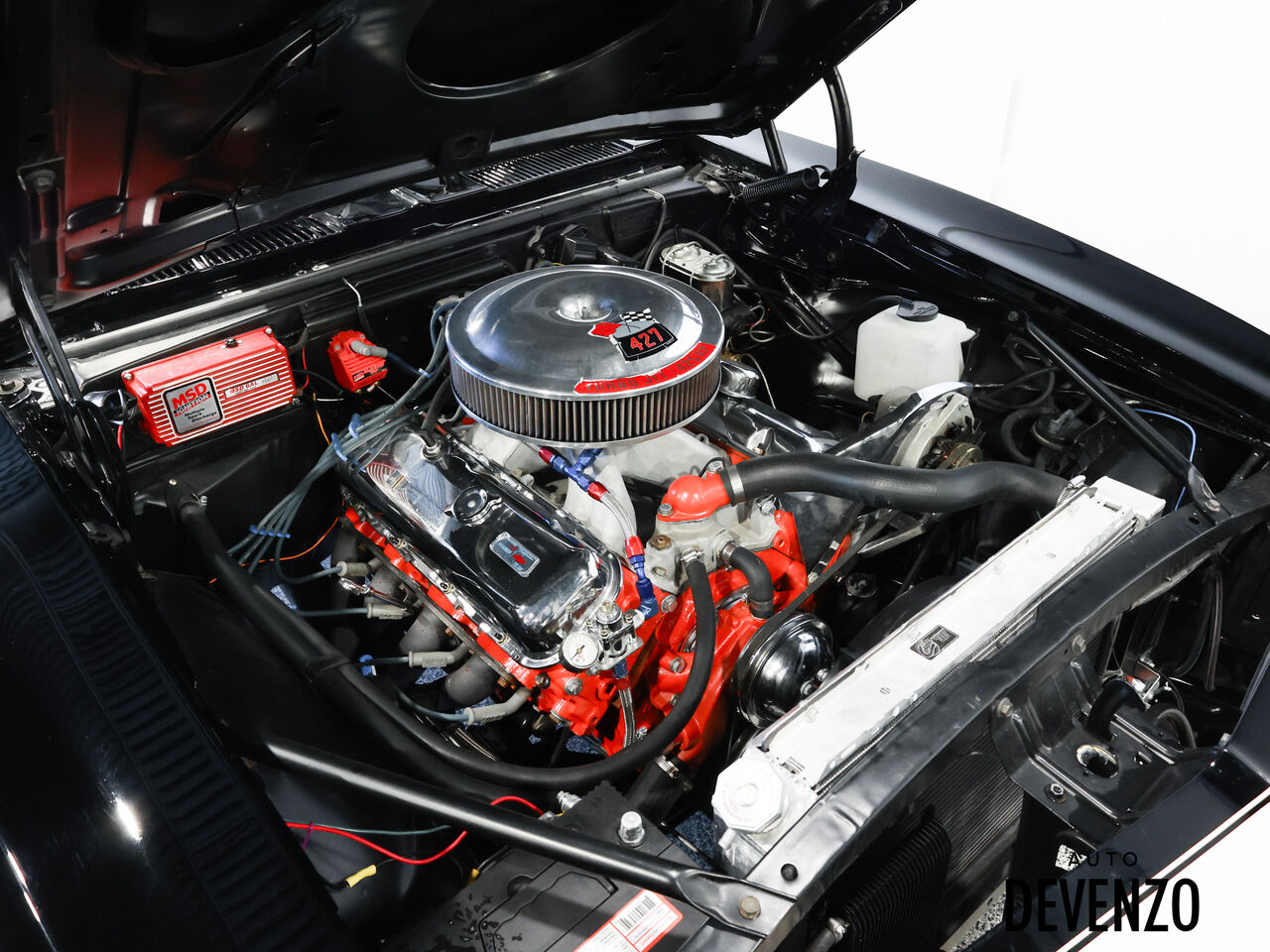 Sous le capot, on retrouve un impressionnant V8 GM Stroker 489 pc, jumelé à une transmission automatique Power Glide 2 vitesses ainsi qu’un différentiel GM 12 bolts avec ratio 4.10. Complêtement restaurer frame-off réalisée en 2010, avec plusieurs améliorations mécaniques et esthétiques majeures, incluant notamment le système de refroidissement, la suspension, les freins, l’échappement et le compartiment moteur.