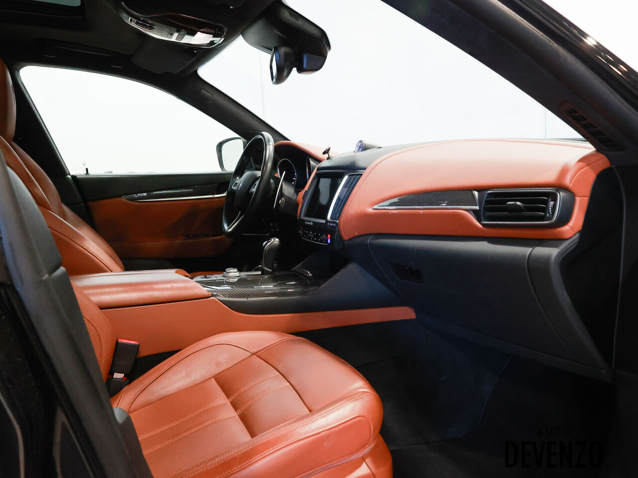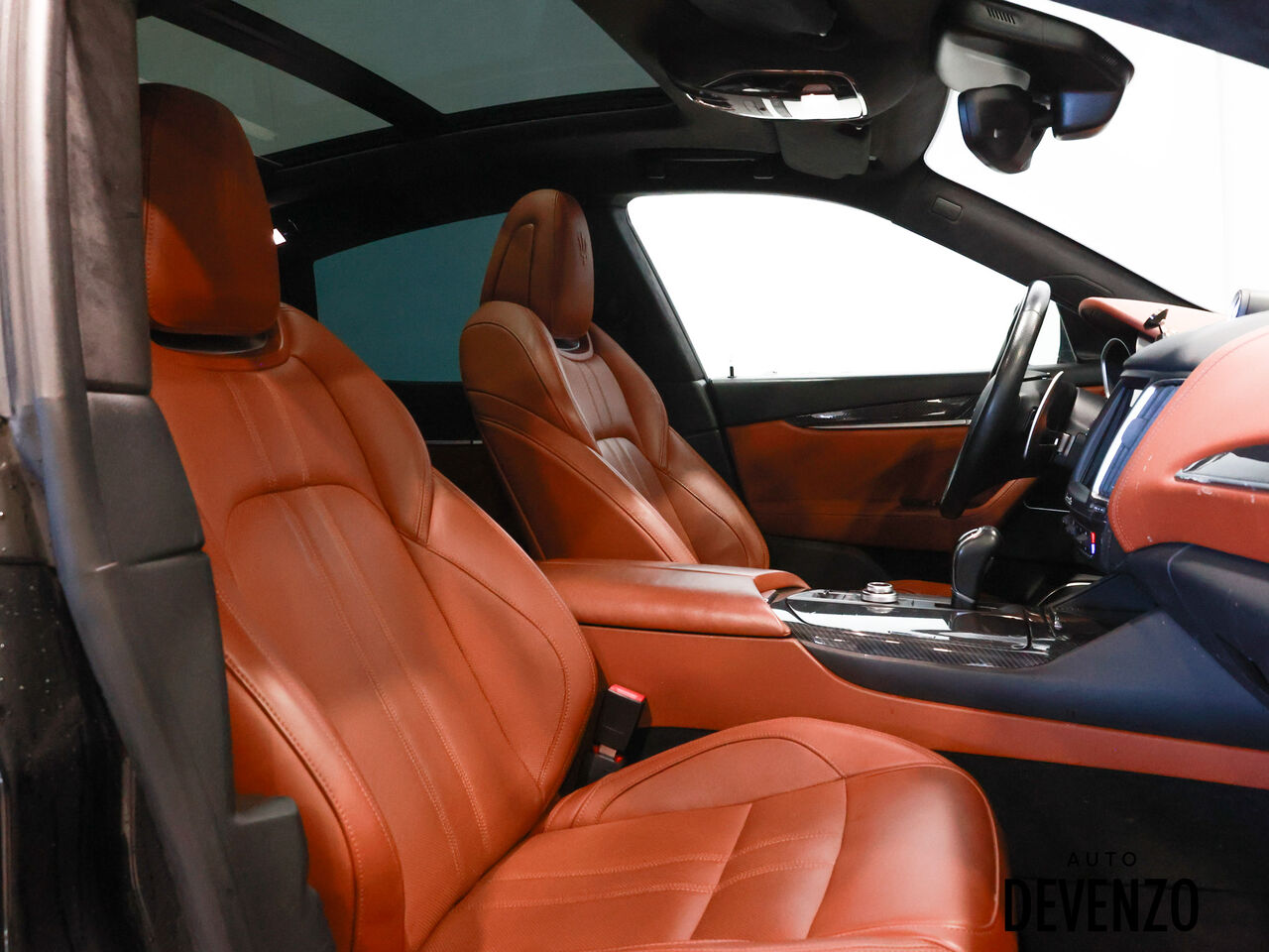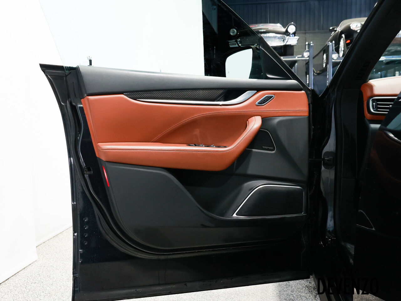 2017 Maserati Levante S AWD 424hp, Nero Ribelle Mica (silk black metallic) on Dark Brown Premium Natural Leather, Carbon Fiber Interior Trim, Premium Package, Sport Package, Advanced Driver Assistance Package with Adaptive Cruise Control, Blind Spot Assist, Heated and Cooled Seats, Surround View Camera, Harmon Kardon Sound System, Keyless Entry, Headrests Trident Stitching, Panoramic Sunroof, Alcantara Roof Lining, 21'' Sport Package Black Wheels...