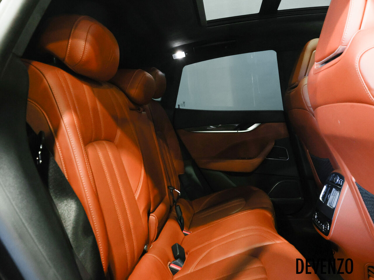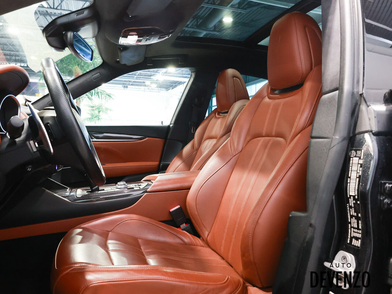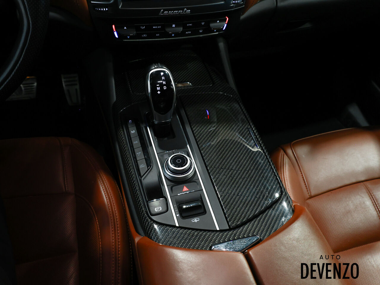 2017 Maserati Levante S AWD 424hp, Nero Ribelle Mica (silk black metallic) on Dark Brown Premium Natural Leather, Carbon Fiber Interior Trim, Premium Package, Sport Package, Advanced Driver Assistance Package with Adaptive Cruise Control, Blind Spot Assist, Heated and Cooled Seats, Surround View Camera, Harmon Kardon Sound System, Keyless Entry, Headrests Trident Stitching, Panoramic Sunroof, Alcantara Roof Lining, 21'' Sport Package Black Wheels...