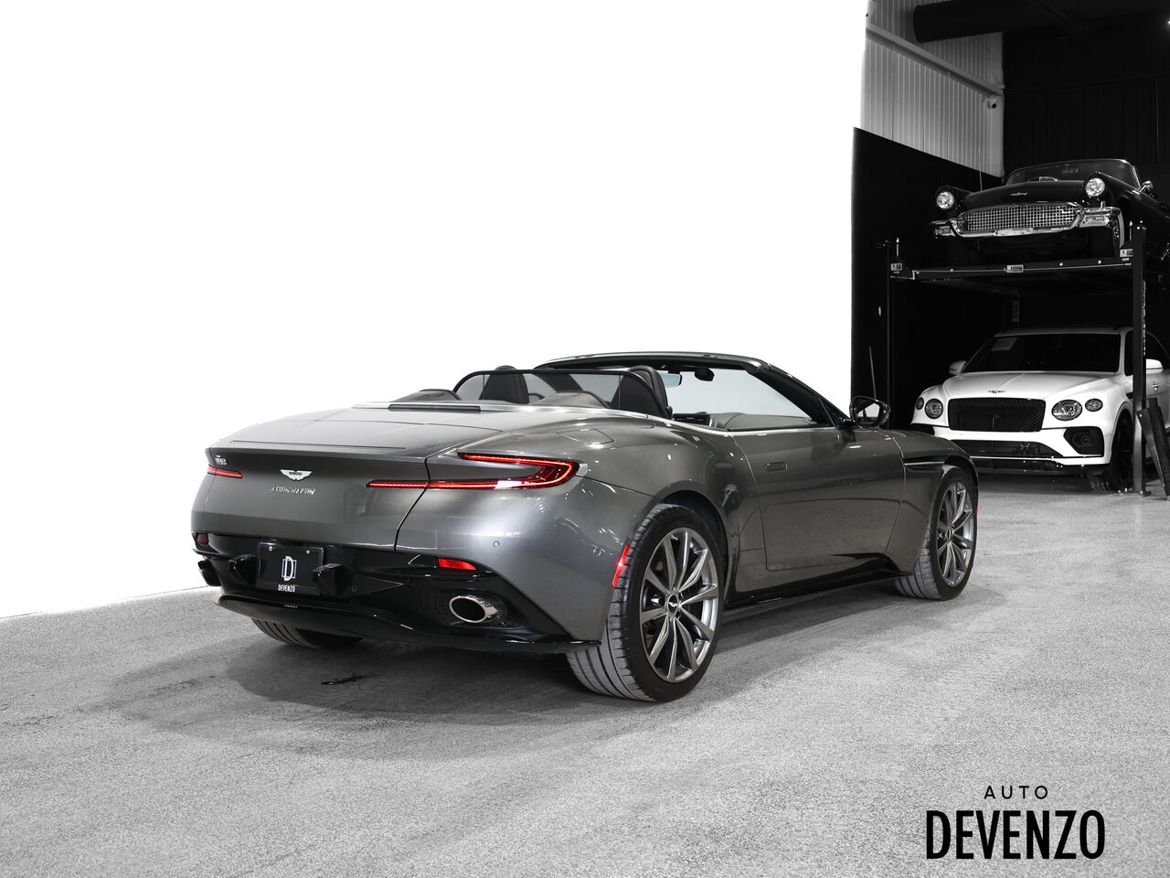 Rare 2019 Aston Martin DB11 Volante V8 4.0L Twin Turbo 503HP, Grey Metallic on Black with Contrast Stitching, Piano Black Trim, 20'' Wheels, Black Calipers, Bang & Olufsen 3D Sound System, Heated and Ventilated Seats, 360 View Camera, Navigation System.... Battery Charger and Car Cover ... Beautiful Condition !!