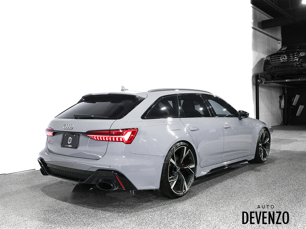 2022 Audi RS6 Avant 4.0 TFSI Quattro 591HP, Nardo Grey/ Black - Express Red Stitching Valcona Leather, Black Optics Package, Red RS Design Package, Heated and Ventilated Seats, Heated Steering, Heads Up Display, Bang & Olufsen Sound System, Surround View Camera, Driver Assistance Package with Adaptive Cruise Control. Auto Devenzo, Leader des concessionaires usagés de véhicules de luxe au Canada Venez vivre une experience et un service VIP hors du commun. Visitez notre page Instagram et Facebook Transport partout au pays. Nous offrons le meilleur programme de garantie prolongée pour véhicule haut de gamme. Nous reprenons votre échange a un prix tres competitif Devenez propriétaire de la voiture de vos reves !! Financement & Leasing Credit-Bail Disponible Come Visit Our New Showroom Of Exclusive Vehicles Of All Makes And See Why We Are The New Jewel Of Used Car Dealers In Canada !! Transport offered all over the country at competitive rates Premium Extended Warranty Available For High End Vehicles Valid Across The Country Bank Financing and Leasing We Accept All Trade-Ins !!