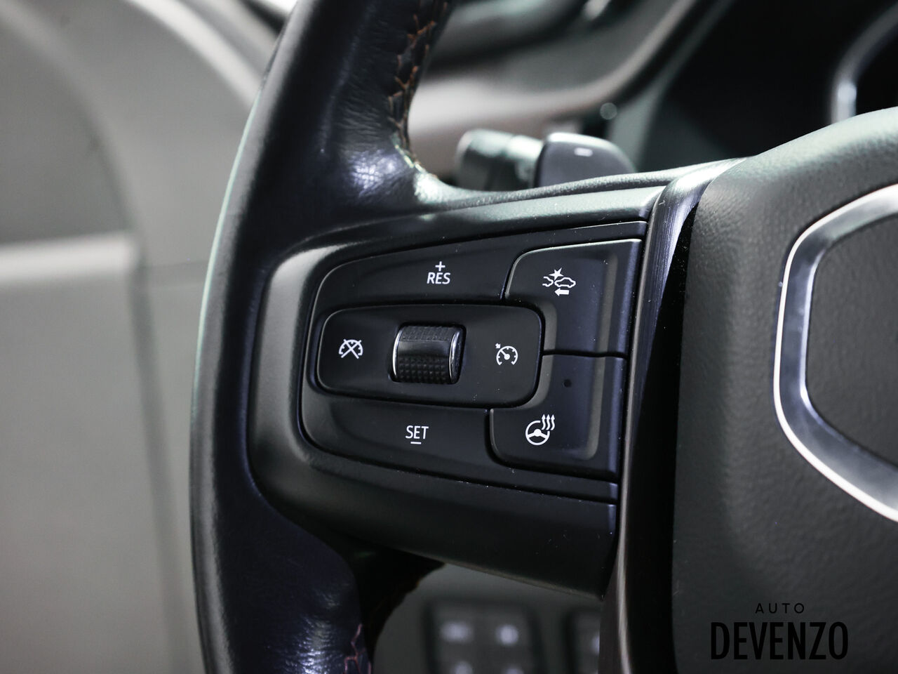 Groupe sécurité pro de GMC comprend alerte de collision en marche avant (UEU), indicateur de distance avec le véhicule à l'avant (UE4), freinage de détection des piétons à l'avant (UKJ), phares IntelliBeam (TQ5), système de suivi de voie avec avertisseur de sortie de voie (UHX) et freinage d'urgence automatique (UHY) (Comprend fonction Bouclez pour rouler (T8Z) et siège à alerte de sécurité (HS1).)