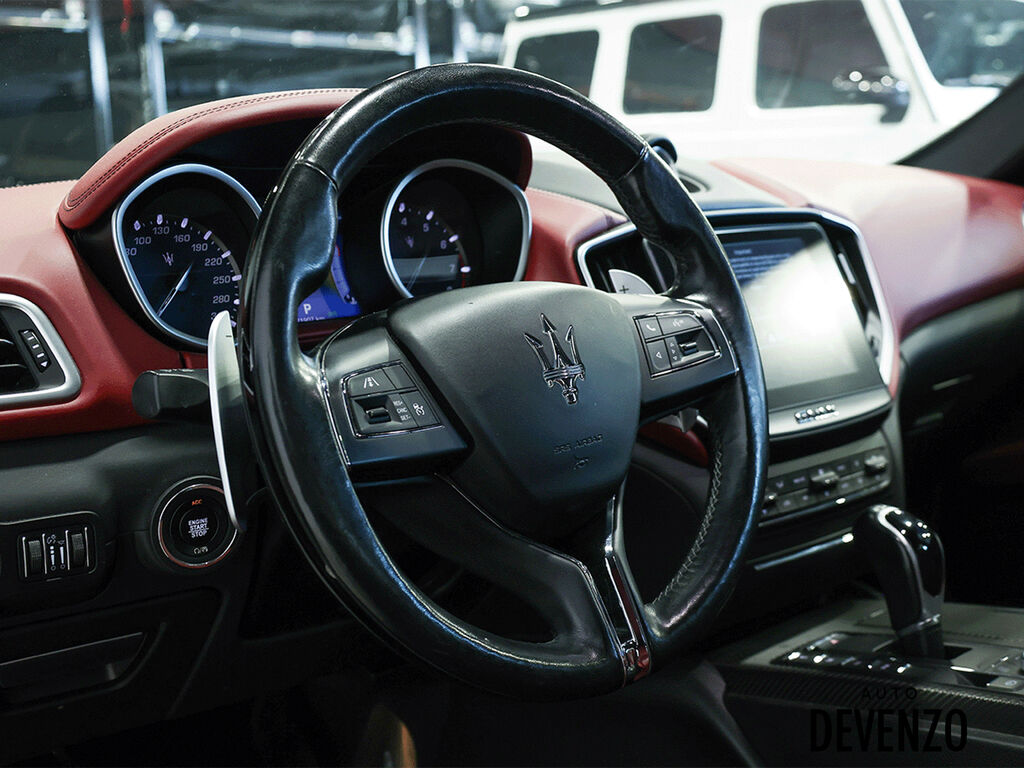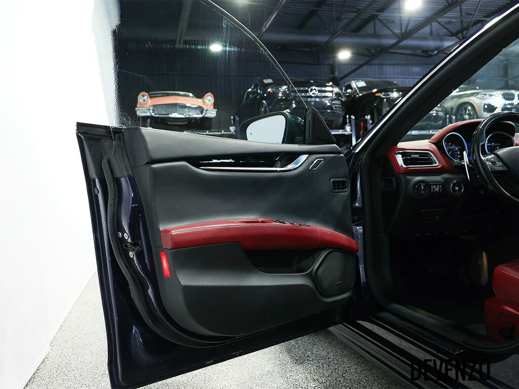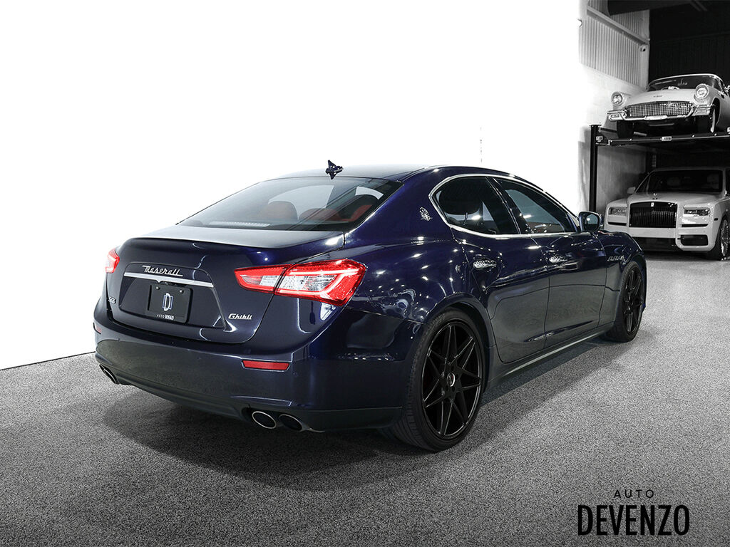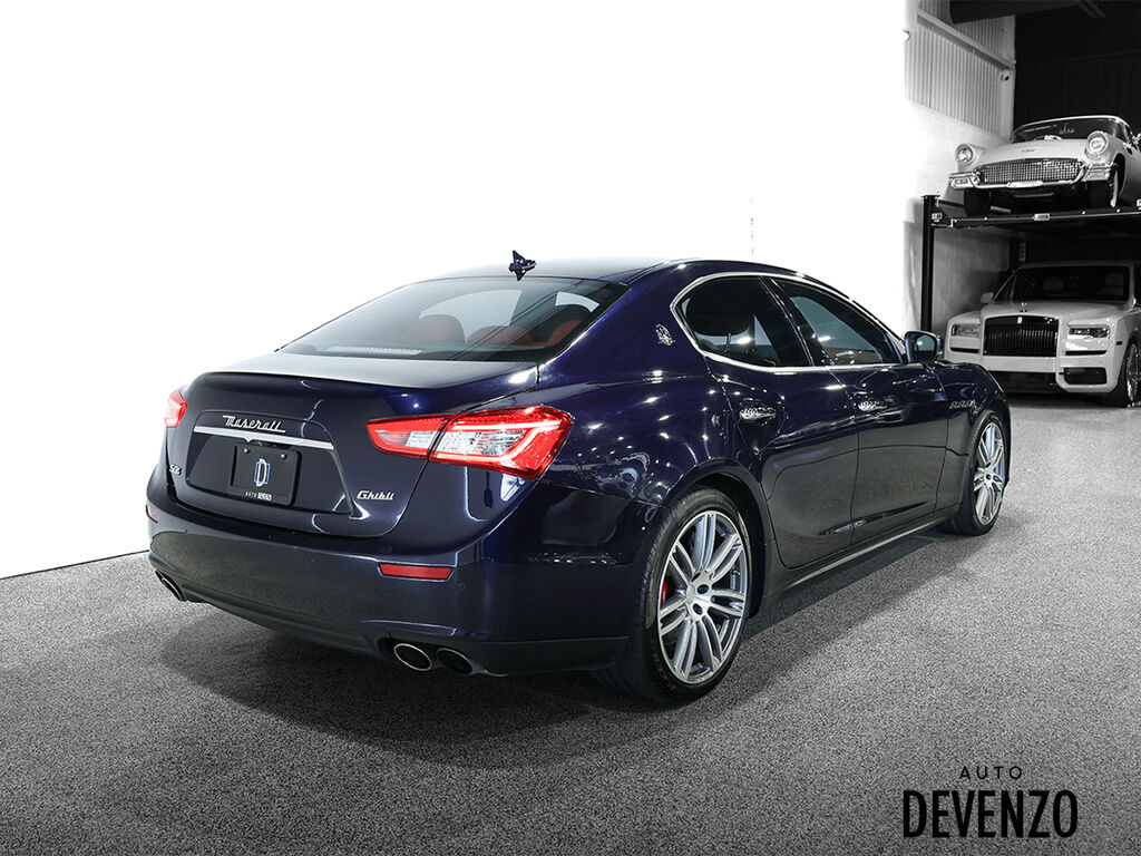 Beautiful Low Mileage 2017 Maserati Ghibli S Q4 404hp Twin Turbo V6, Blue on Red Rosso Leather, with Driving Assistance Package - Adaptive Cruise Control, Premium Package, Sport Package, Sport Heated Steering Wheel with Paddle Shifters, Black Alcantara Roof Lining, Heated and Ventilated Seats, Navigation System, Rear View Camera, Harmon Kardon Sound System, Red Brake Calipers, Just Installed Brand New Tires !!! *** OPTIONAL GIANELLE Black Aftermakret WHEEL SET *** Auto Devenzo,Venez Vivre Une Experience Et Un Service Vip Hors Du Commun. Transport Partout Au Canada , Facetime / Video Sur Demande. Nous Offrons Le Meilleur Programme De Garantie Prolongée Pour Véhicule Haut De Gamme. Nous Reprenons Tous Vos Échanges Auto Devenzo, Devenez Propriétaire de la Voiture de Vos Reves !! Financement & Leasing Credit-Bail Disponible Come Visit Our New Showroom Of Exclusive Vehicles Of All Makes And See Why We Are The Jewel Of Used Car Dealers In Quebec Transport All Over Canada Premium Extended Warranty Available For High End Vehicles Valid Across The Country Financing And Leasing Available And Trade-ins Are Welcome.