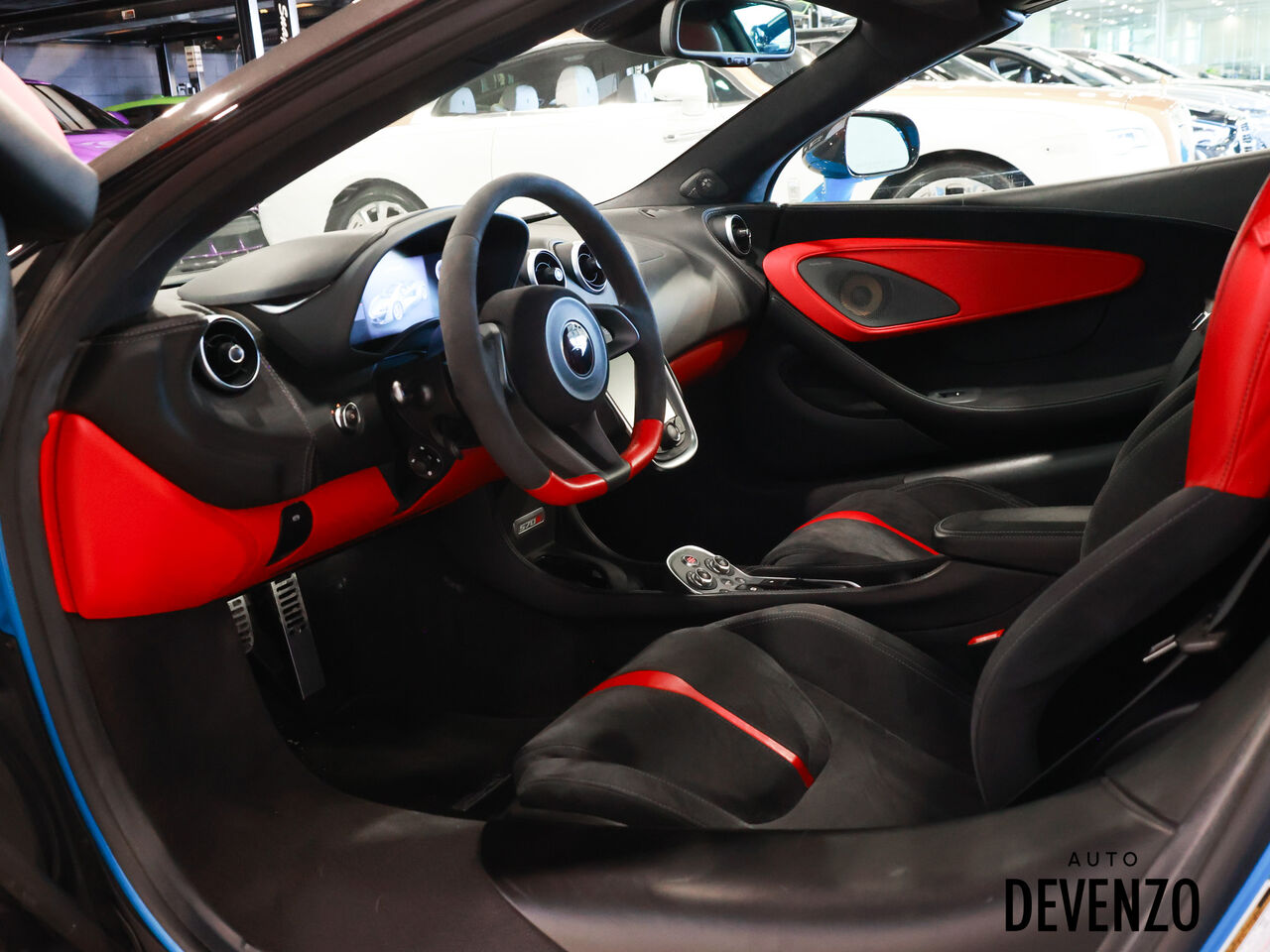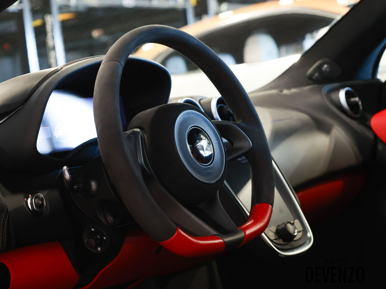 MSO Carbon Fiber Exterior Elements, Lifting System, Bower Wilkins Sound System, Alcantara Seats in black with Red Leather Inserts.