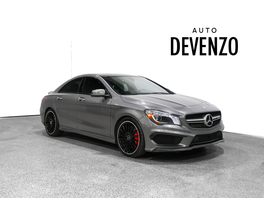 2015 Mercedes-Benz CLA45 AMG 2.0L 355HP, Grey Metallic / Black Artico Dinamica , AMG Night Package, AMG Drivers Package, 19'' Wheels Multi Spoke Matte black Wheels, Carbon Fiber Interior Trim, Carbon Fiber Rear Spoiler, Red Brake Calipers, Premium Package, GPS Navigation, Harmon Kardon Sound System, Rear View Camera, Moonroof Auto Devenzo, Leader des concessionaires usagés de véhicules de luxe au Canada Venez vivre une experience et un service VIP hors du commun. Visitez notre page Instagram et Facebook Transport partout au pays. Nous offrons le meilleur programme de garantie prolongée pour véhicule haut de gamme. Nous reprenons votre échange a un prix tres competitif Devenez propriétaire de la voiture de vos reves !! Financement & Leasing Credit-Bail Disponible Come Visit Our New Showroom Of Exclusive Vehicles Of All Makes And See Why We Are The New Jewel Of Used Car Dealers In Canada !! Transport offered all over the country at competitive rates Premium Extended Warranty Available For High End Vehicles Valid Across The Country Bank Financing and Leasing We Accept All Trade-Ins !!