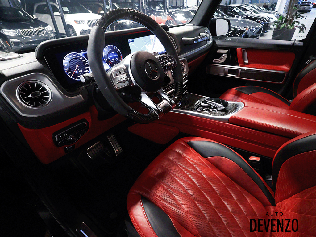 2021 Mercedes-Benz G63 AMG 4MATIC, Loaded with Options : Night Black (magno) / Classic Red/Black AMG Exclusive Nappa Leather, AMG Carbon Fiber Trim, Exclusive Interior Plus Package, Seat Comfort Package Plus, Night Package (magno), Dinamica/Carbon Steering Wheel, AMG Drive Unit Steering Wheel Buttons, 22'' AMG Cross-Spoke Wheels - Matte Black. Auto Devenzo, Leader des concessionaires usagés de véhicules de luxe au Canada Venez vivre une experience et un service VIP hors du commun. Visitez notre page Instagram et Facebook Transport partout au pays. Nous offrons le meilleur programme de garantie prolongée pour véhicule haut de gamme. Nous reprenons votre échange a un prix tres competitif Devenez propriétaire de la voiture de vos reves !! Financement & Leasing Credit-Bail Disponible Come Visit Our New Showroom Of Exclusive Vehicles Of All Makes And See Why We Are The New Jewel Of Used Car Dealers In Canada !! Transport offered all over the country at competitive rates Premium Extended Warranty Available For High End Vehicles Valid Across The Country Bank Financing and Leasing We Accept All Trade-Ins !!